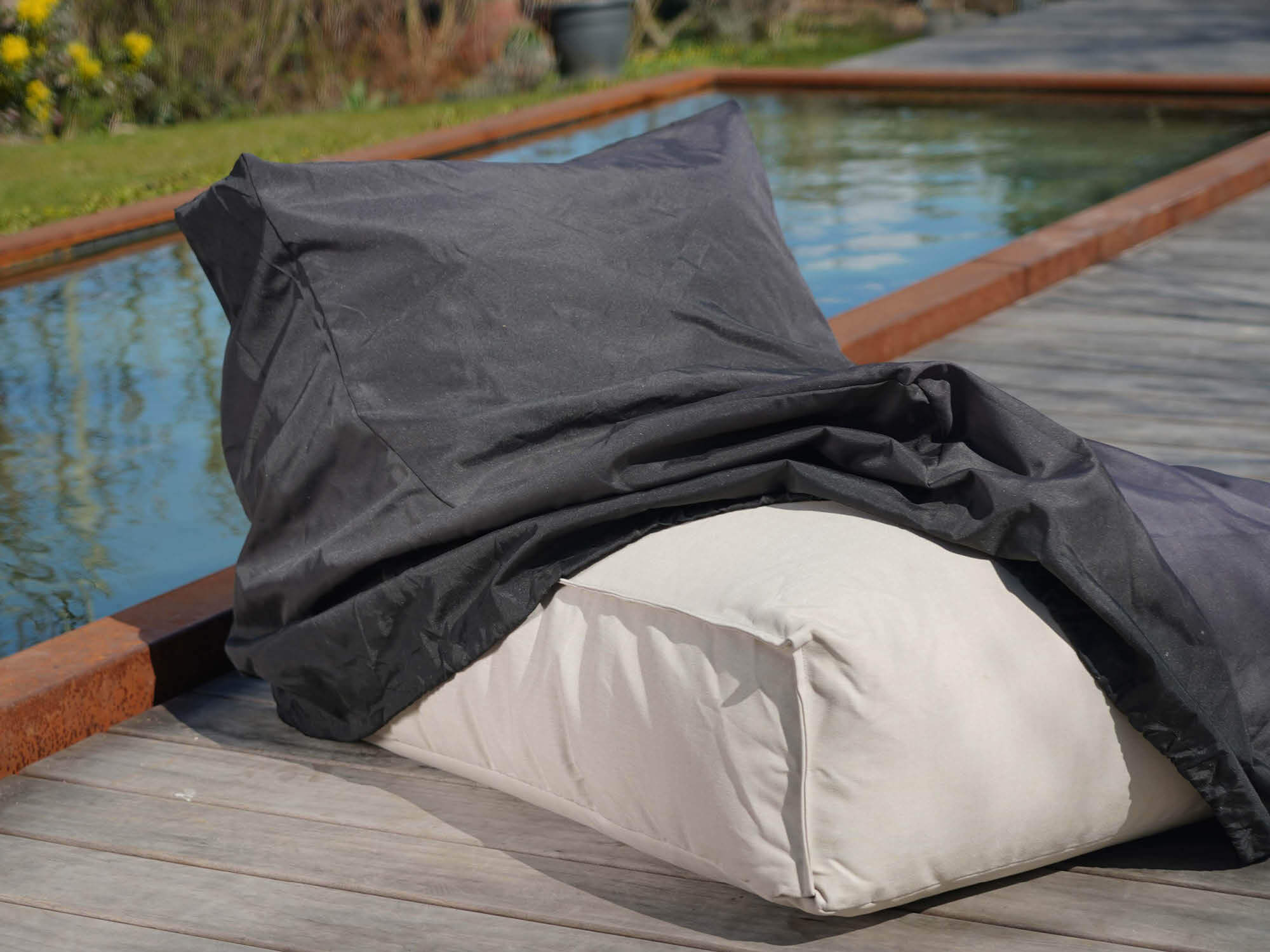 Dank der PU-beschichteten Innenseite des outdoortauglichen Stoffes ist es kein Problem, wenn dein Sitzsack oder Pouf mal ein paar Tropfen abbekommt - nur dauerhaft sollte er nicht im Regen stehen.